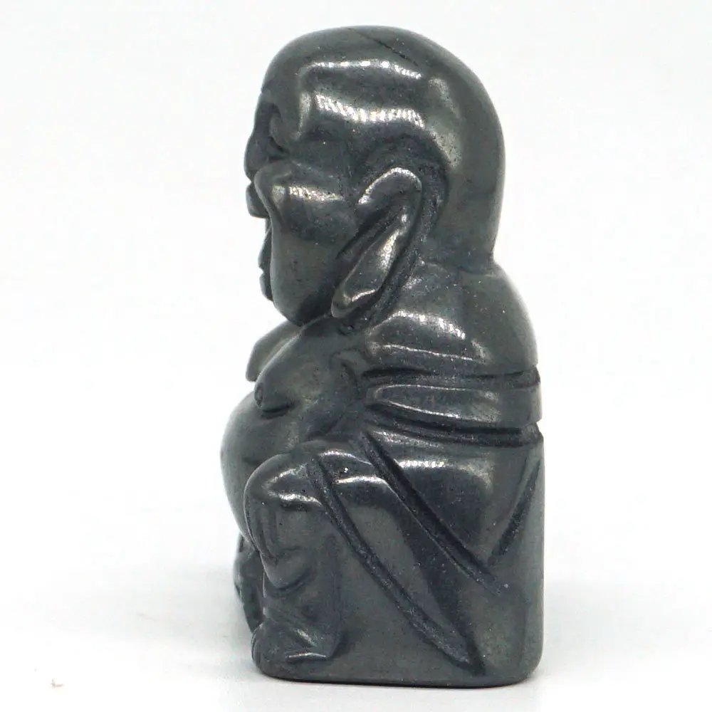Maitreya Happy Laughing Buddha Figurine Natural Gemtone Black Hematite Carved Crystal Healing Statu